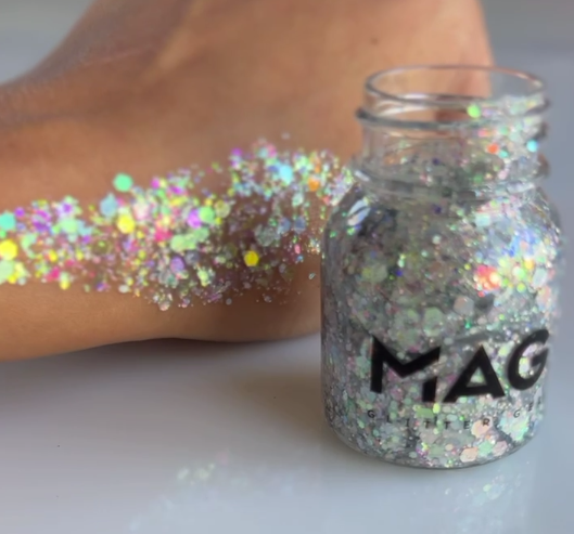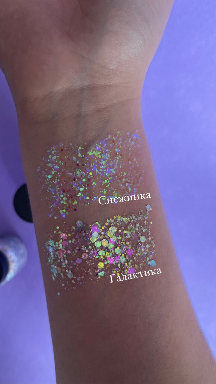 Кто-то из аквагримеров-старичков, кажется, скучал по американским гель-блëсткам Pixie. Я не скучала, т.к. Mag в этом плане меня абсолютно устраивает. И консистенцией, и оттенками, и количеством самих блесток в геле, и их размерами. Они на коже выглядят богато. В баночки Пикси я когда-то подсыпала сама мелкой фракции, с которой лучше смотрелось, а здесь сразу всë как надо: и мелкие, и крупные, и формы есть разные.